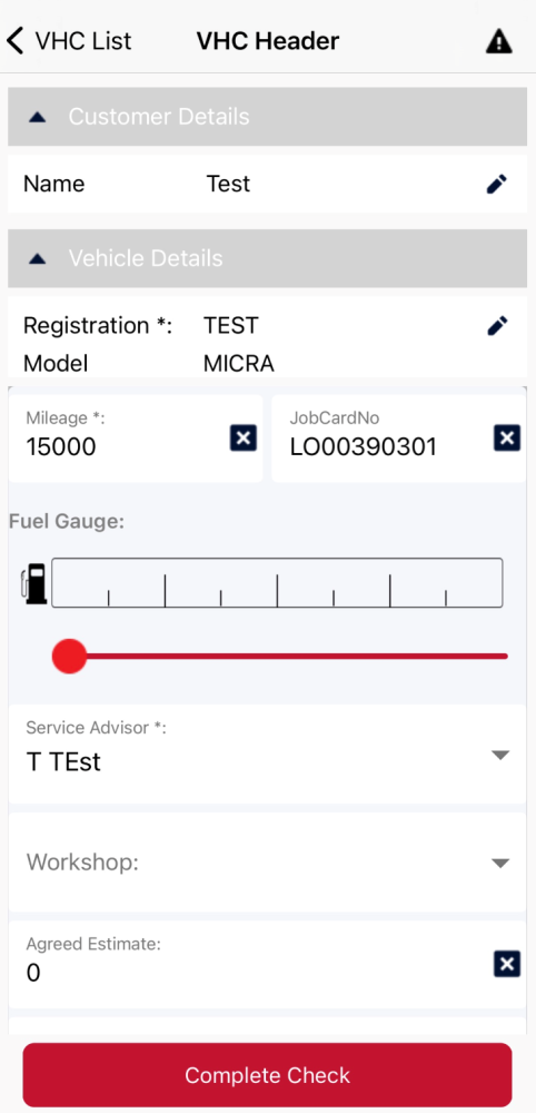 Once on this screen, please press the button at the top right of the screen, and this will open a menu that allows you to download the repair order. Once the user presses this button, a PDF version of their VHC will appear that a user can then edit and write back to the DMS.