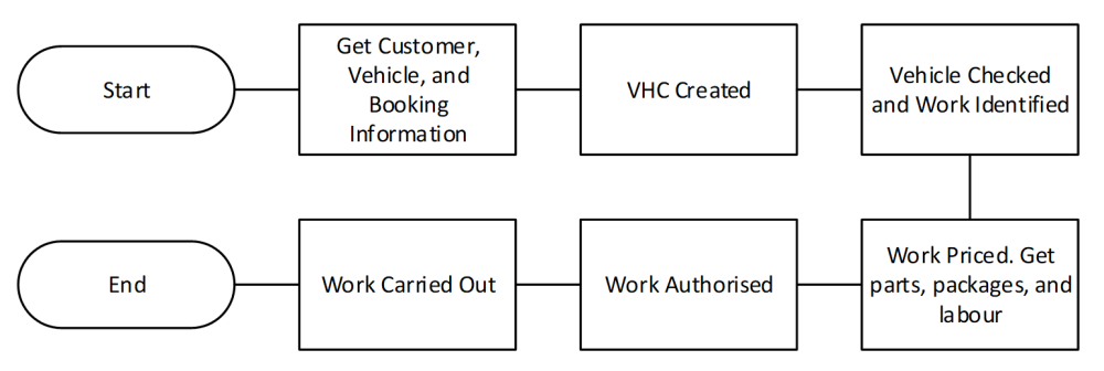 Overview of the normal autoVHC process flow technician check, work and authorisation pricing process for a VHC.