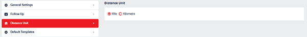 Edit Default Distance Unit Site settings gives the dealership the choice to set the default distance unit.