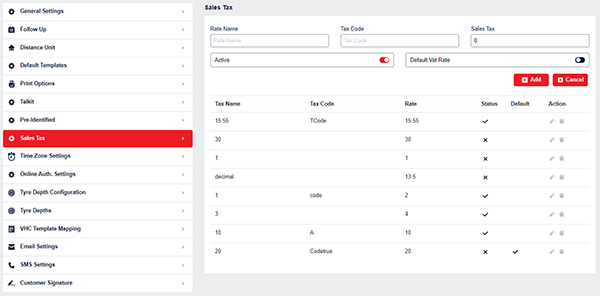 By clicking the edit pencil icon next to any tax rate, you are given the ability to update the values.