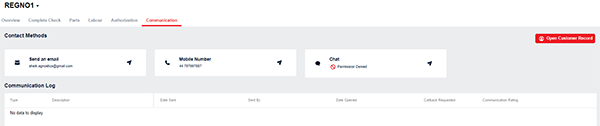 Secondly click the communication tab at the top of the VHC record page.