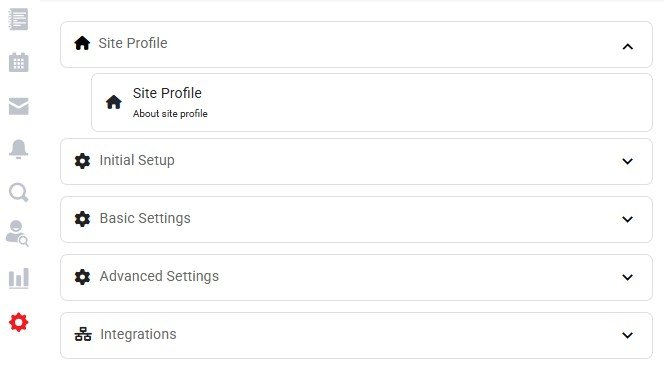 Site Profile can be accessed from the navigation bar by clicking on Settings > Site Profile