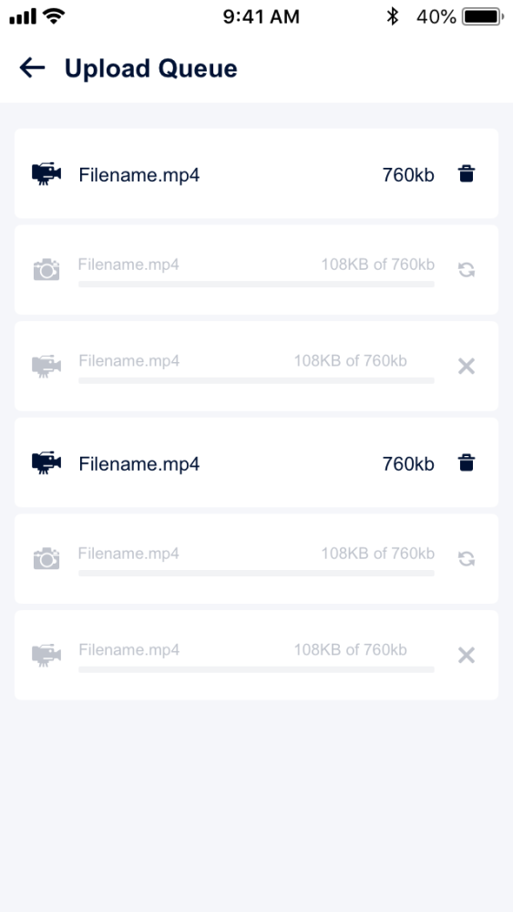 The upload queue contains a list of photos & video that are due to be uploaded.
