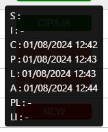 It is also possible to hover over the status of a VHC on the Daily Diary page. This will show a popup of all timestamps.