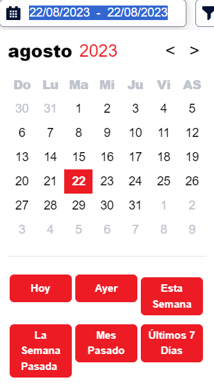 El rango de fechas siempre será el predeterminado a la fecha actual al iniciar sesión, recordará el nuevo rango de fechas si se modifica.