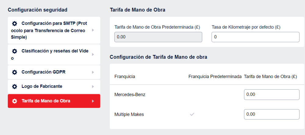 Editar tasa de mano de obra La configuración del sitio le da al concesionario la opción de establecer la tarifa de mano de obra predeterminada.