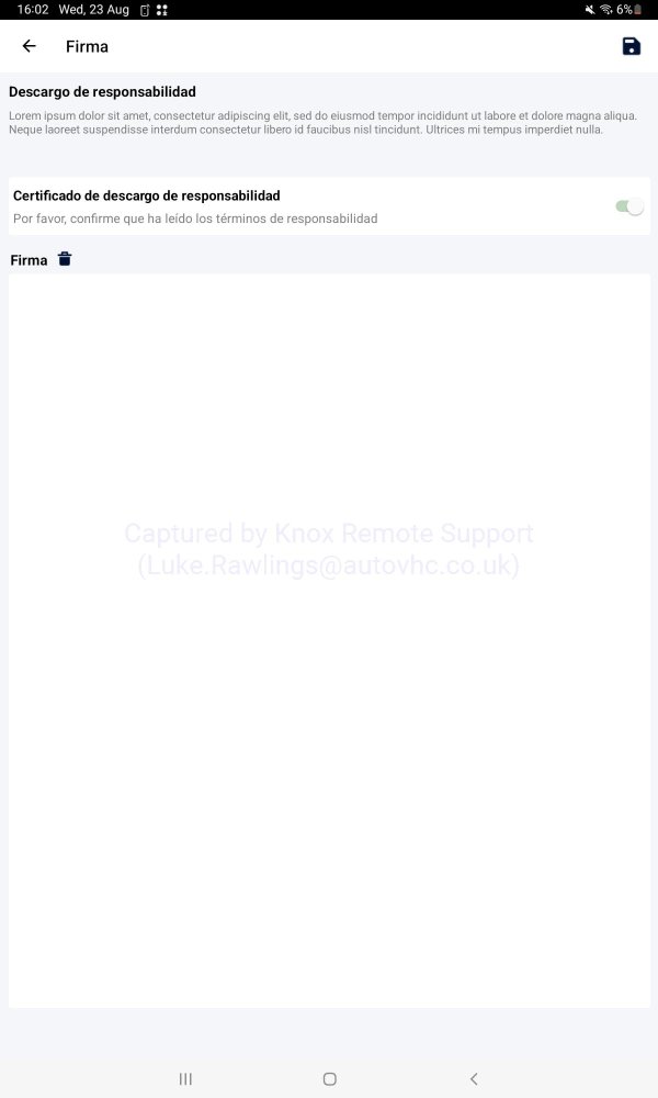 Si la Firma del cliente está habilitada, aparecerá un botón de firma en la parte inferior de la pantalla Lista de verificación de VHC.
