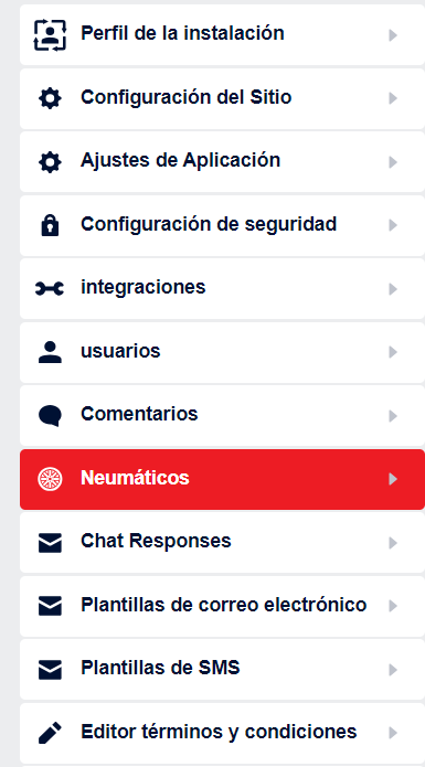 Se puede acceder a los neumáticos desde la barra de navegación haciendo clic en Configuración > Neumáticos