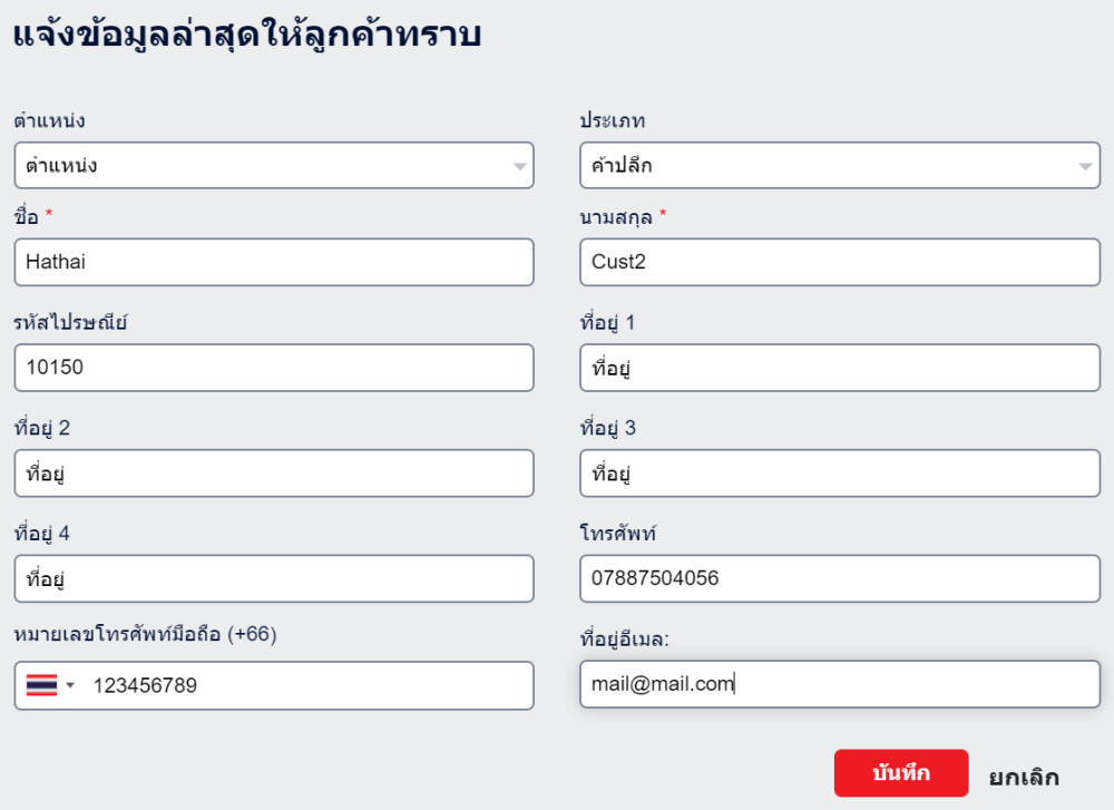 หลังจากแก้ไขข้อมูลลูกค้าเสร็จแล้ว ให้คลิก บันทึก (Save)