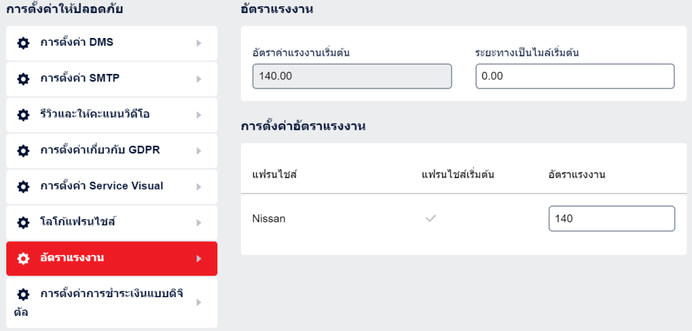 การแก้ไขอัตราค่าแรง (Edit Labour Rate) ตัวตั้งค่าระบบ (Site settings) ให้อิสระแก่ศูนย์บริการในการเลือกกำหนดอัตราค่าแรงที่เป็นค่าเริ่มต้นได้เอง