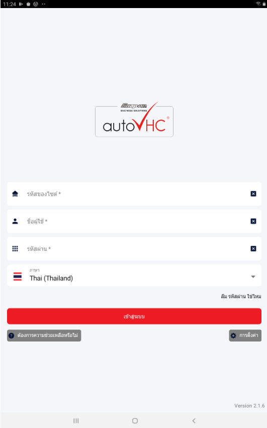 หลังจากเปิดโปรแกรม ผู้ใช้โปรแกรมจะพบกับหน้าจอล็อกอิน ผู้ใช้โปรแกรมจะต้องล็อกอินเข้าระบบโดยกรอกโค้ดของศูนย์บริการกับรหัสผ่าน