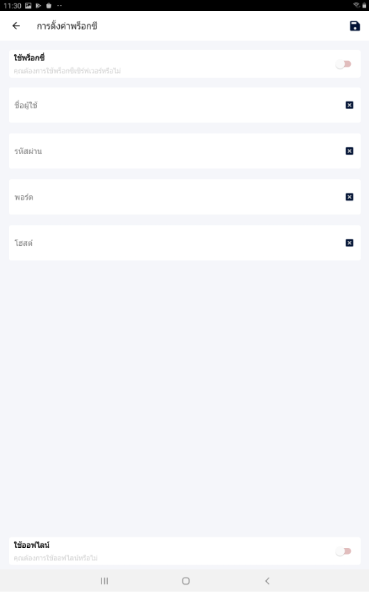 การตั้งค่าพร็อกซี่ (Proxy settings) จะอยู่ในหน้าจอตั้งค่า การตั้งค่าพร็อกซี่มีไว้สำหรับศูนย์บริการที่ต้องใช้ระบบขอการยืนยันผ่านพร็อกซี่ในการเชื่อมต่ออินเตอร์เน็ต