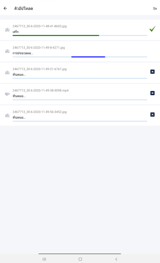 ในหน้าจอนี้ ท่านจะสามารถตรวจสอบความคืบหน้าของการอัพโหลด ลบการอัพโหลด และหยุดการอัพโหลด