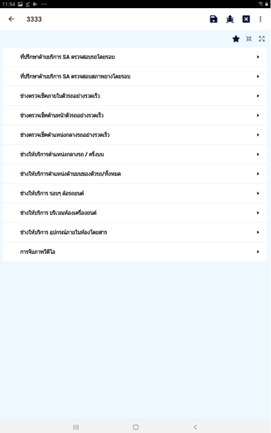 - “รายการตรวจเช็คต่างๆ ที่จัดเป็นกลุ่ม (Group items)” หมายถึงรายการตรวจเช็คสภาพรถที่จัดหมวดหมู่เป็นกลุ่ม ใช้สำหรับยุบปิดกลุ่มใดกลุ่มหนึ่งโดยเฉพาะ นอกจากนั้น ยังเป็นตัวช่วยในกระบวนการทำงานเมื่อช่างเทคนิคดำเนินการตรวจเช็คสภาพรถ