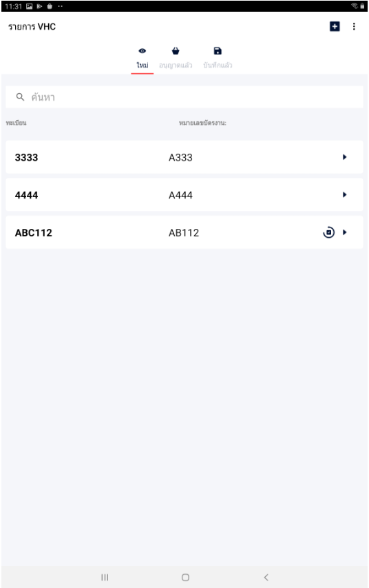 “รายการรถเข้าตรวจเช็ค (VHC list)” จะแสดงรายชื่อรถที่ต้องรับการตรวจเช็คในวันนั้น