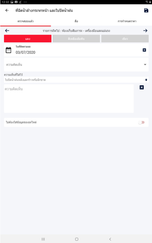 ก่อนอื่น ผู้ใช้โปรแกรมจะต้องเลือกสถานะของอะไหล่ ซึ่งทำได้โดยคลิกที่สีแดง เหลือง หรือเขียว